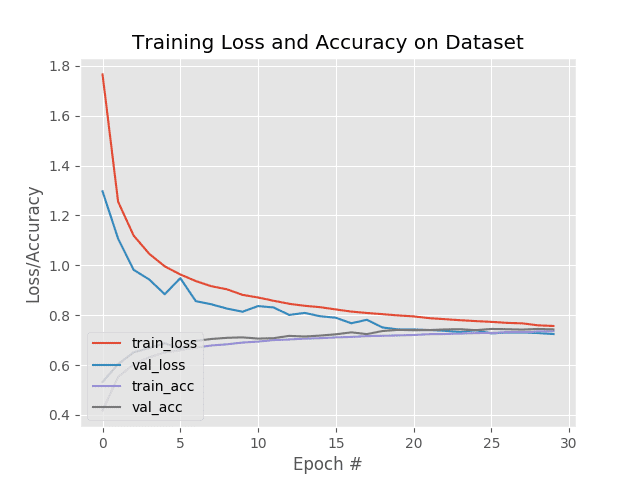 Examining the code block, you’ll notice we are stacking a series of convolutional, ReLU activation, and batch normalization layers prior to applying a pooling layer to reduce the spatial dimensions of the volume. Dropout is also applied to reduce overfitting.