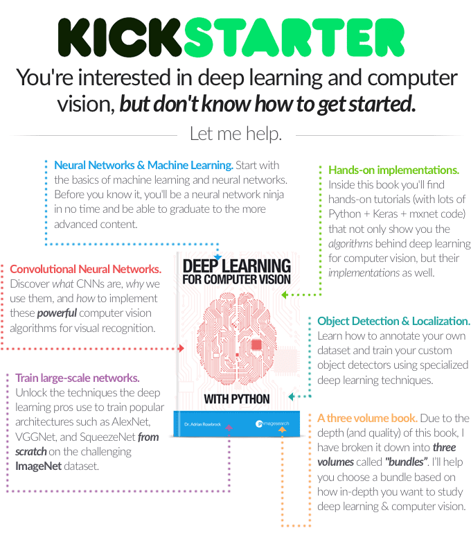The Raspberry Pi for Computer Vision Kickstarter is officially LIVE! To back the Kickstarter campaign (and claim your copy of RPi for CV/my other books and courses at the 15-25% OFF discounted rates), just use the link below: https://www.kickstarter.com/projects/adrianrosebrock/raspberry-pi-for-computer-vision-ebook?ref=project_build And…