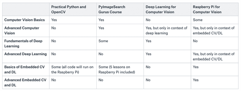 - If you want an in-depth dive into the computer vision field, go with the PyImageSearch Gurus course. Everything covered in PPaO is covered in the Gurus course (and in more detail). This comprehensive computer vision course starts with the fundamentals and leads you all the way up to mastering advanced topics, enabling you to complete your work projects, perform novel research/finish your MSc or PhD, and even prepare you for the CV job market.